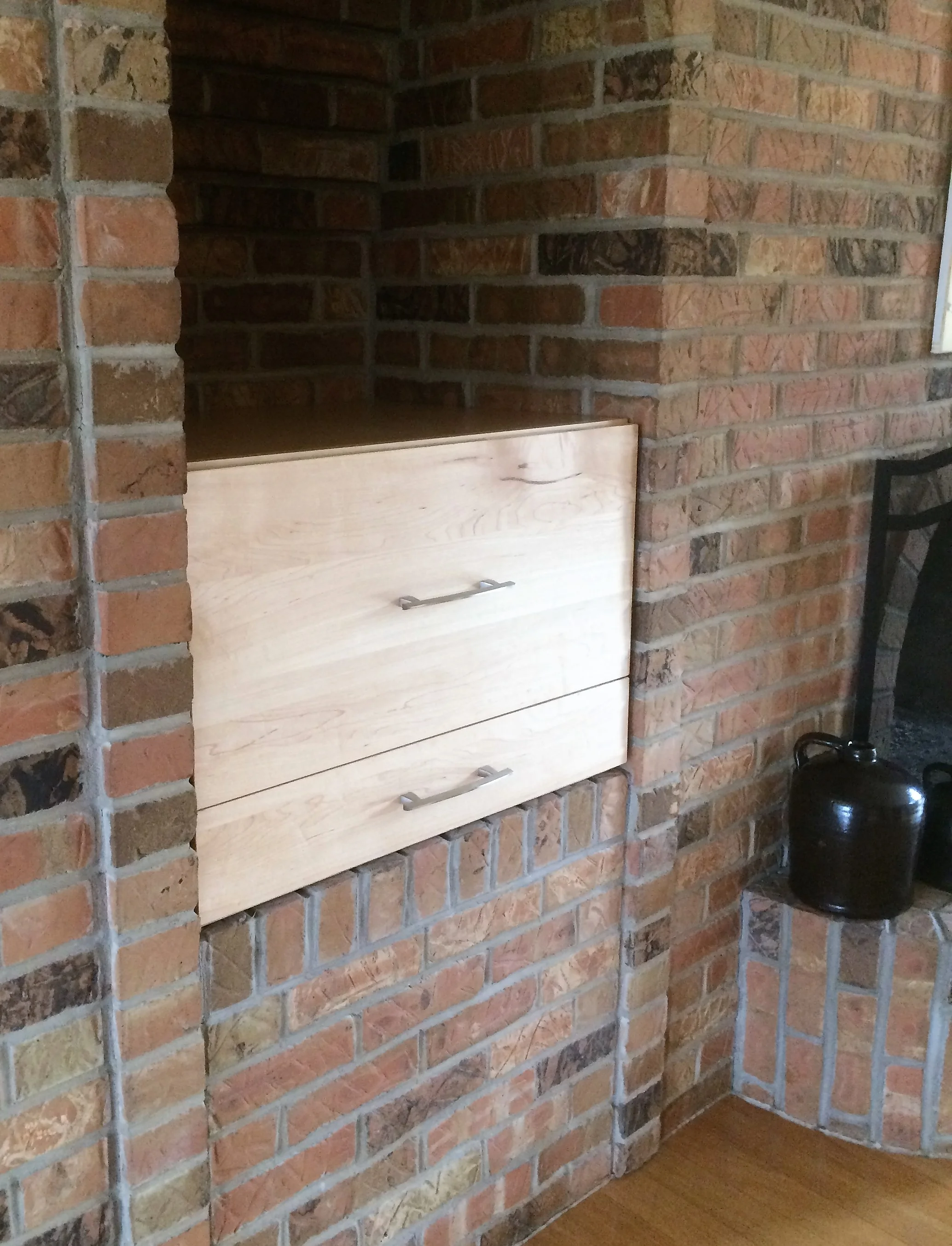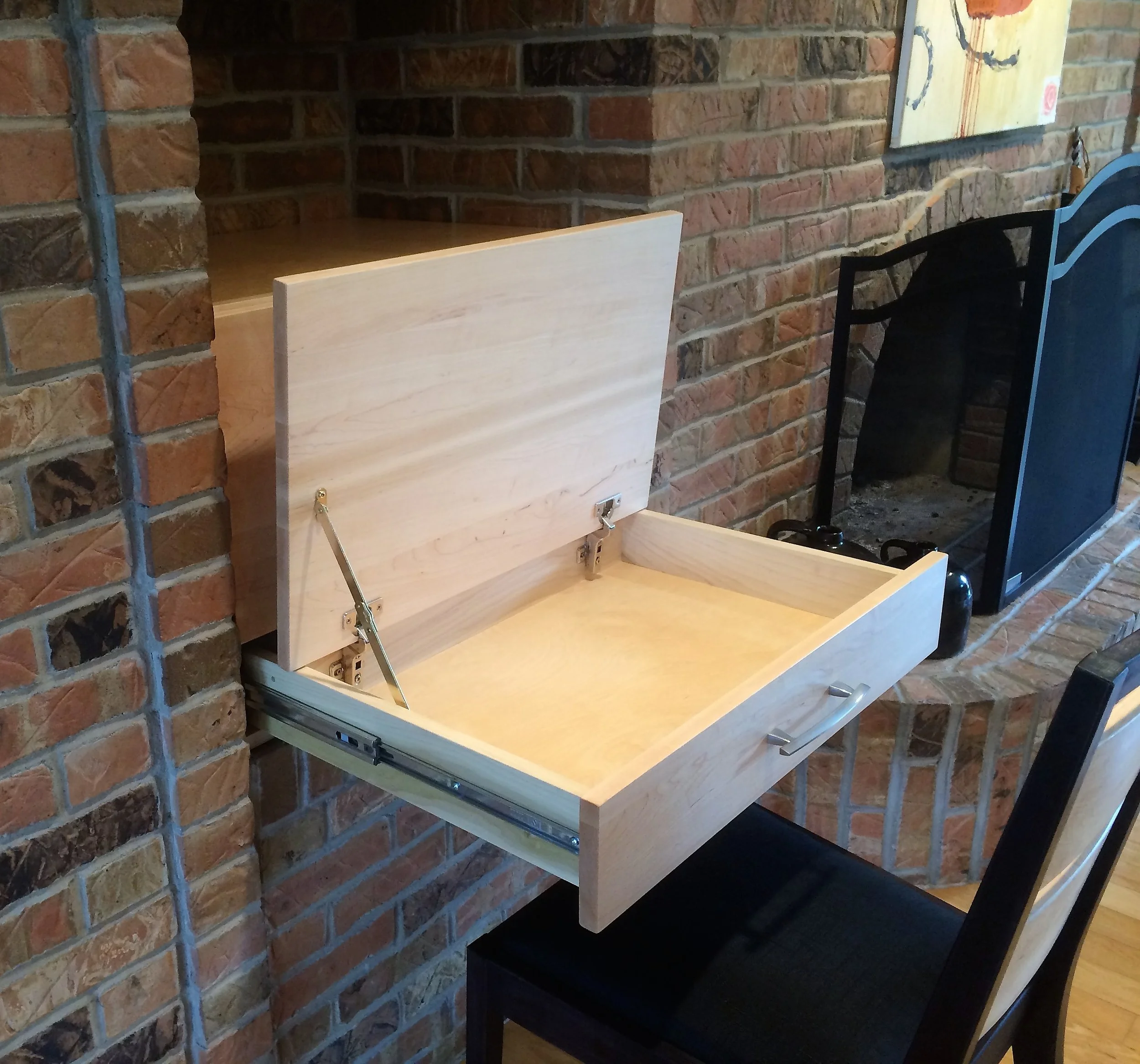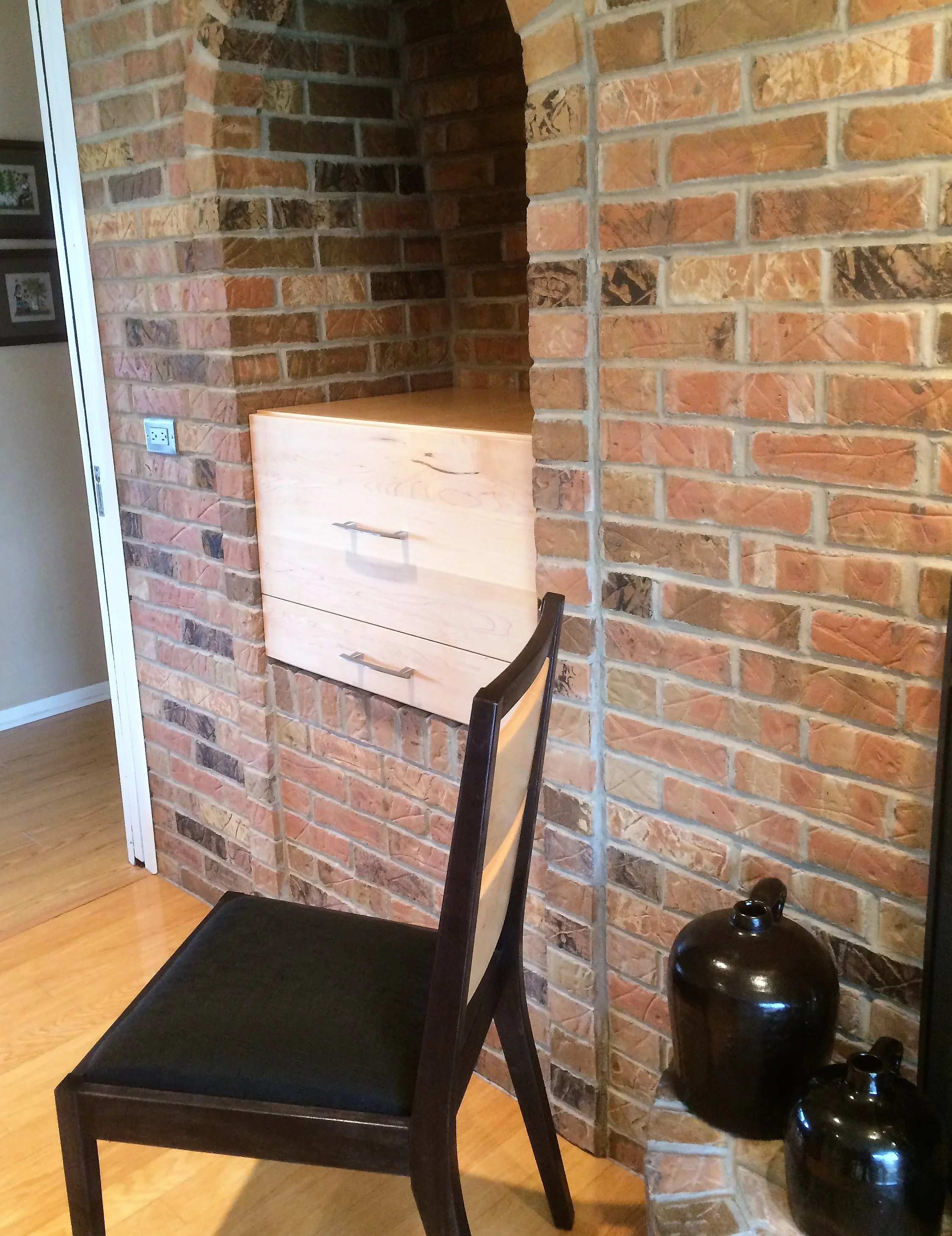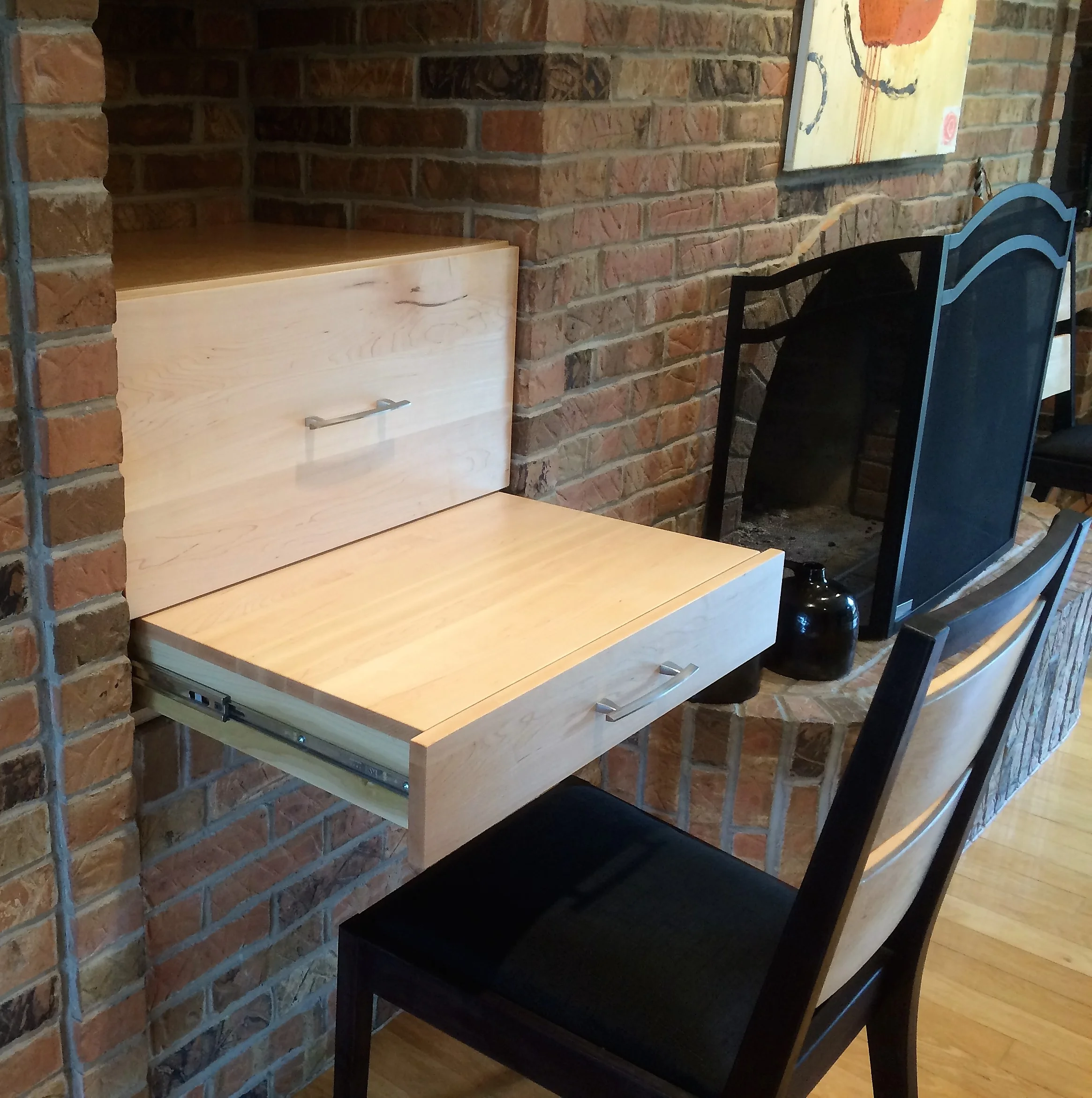 Our clients had an indoor grill space next to their dining room fireplace that they never used. Additionally they needed a space for placing a laptop and paying bills.